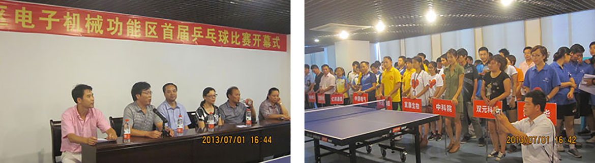 2013年7月1日,上城區電子機械功能區首屆乒乓球賽在園區管委會4樓舉行。本次共有14支隊伍參賽,來自園區的中瑞科技、中源電氣、海興電力、中科院等單位近百名運動員參加了比賽。