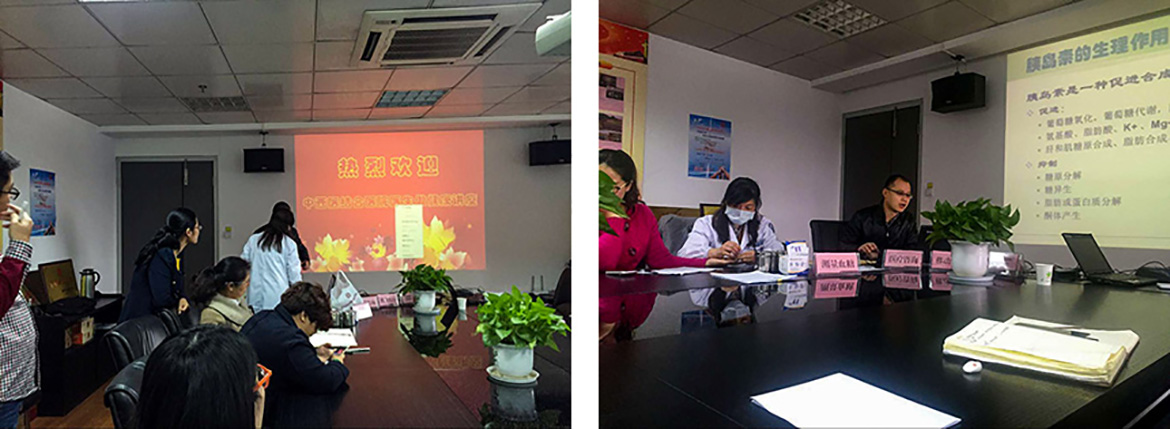醫(yī)生分析公司存在比較多的健康問題是血脂高、血糖高、脂肪肝、高尿酸血癥以及甲狀腺結節(jié)等。對于脂肪肝,醫(yī)生重點分析了其形成原理,讓我們更加懂得了合理飲食的重要性。而對于血糖高的問題,醫(yī)生帶了血糖檢測儀,給參會的每個人免費做了血糖檢測,并講解了血糖和糖尿病的相關醫(yī)學知識,尤其是糖尿病現(xiàn)在已是國人的第二大健康殺手,必須引起重視,所以醫(yī)生重點講了控制血糖,糖尿病的治療和預防措施。甲狀腺結節(jié)也是公司很多員工都存在的健康問題,醫(yī)生也對甲狀腺結節(jié)的知識做了介紹,重點是定期檢查,注意飲食。期間也有員工就自己的健康問題做了咨詢,也有員工帶了自己的體檢報告給醫(yī)生,醫(yī)生都做了認真的講解。