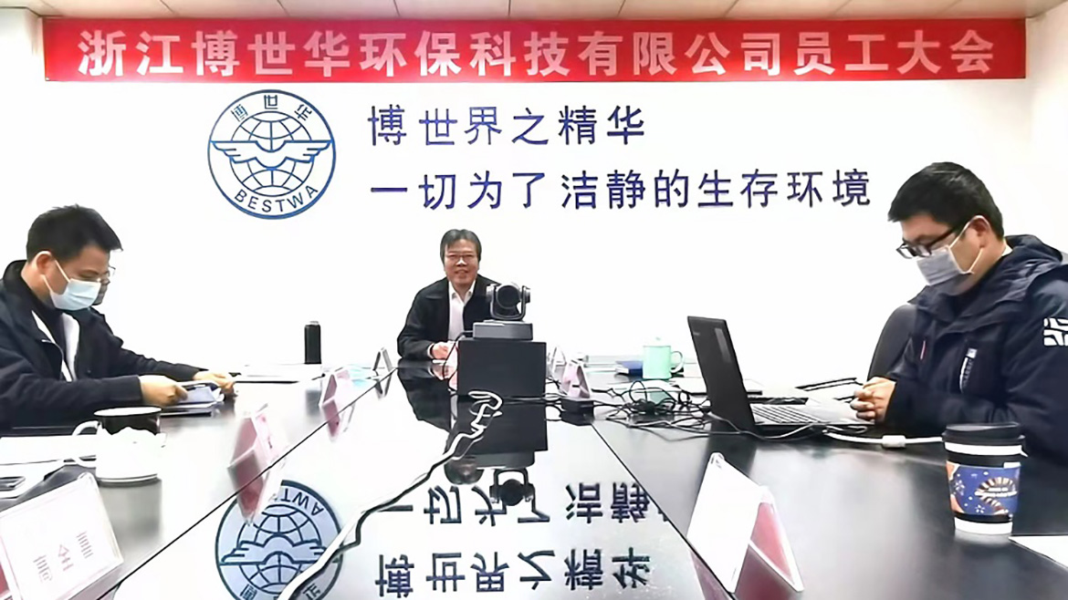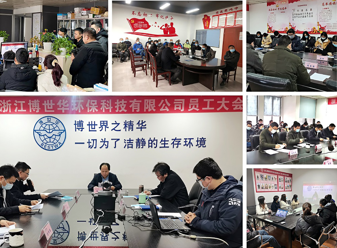 金牛辭歲寒風盡,白虎迎春喜氣來。2022年1月25日上午,浙江博世華環??萍加邢薰?021年度員工大會圓滿召開。因疫情防控需要,本次會議采取線上直播的形式,由總經理王衛民主持。