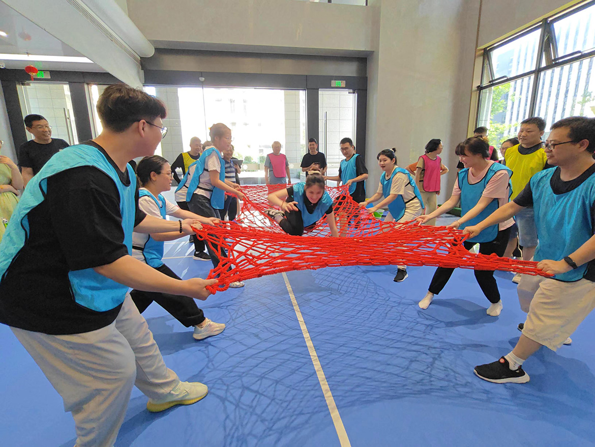 合力搭建延伸出的幾條繩子將大家的勁使在一處,心連在一起。齊心協(xié)力是必須,百折不撓是常態(tài)。現(xiàn)場瞬息萬變,引發(fā)大家陣陣歡呼。